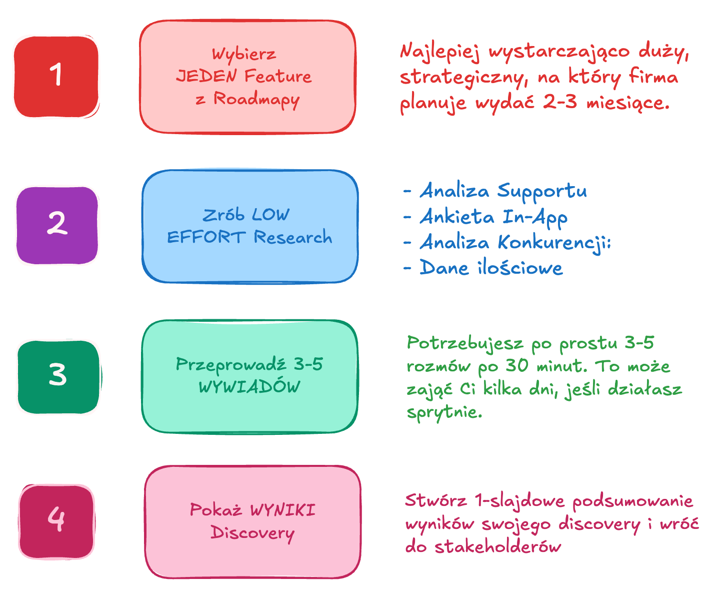 Do tego by zacząć robić discovery i się uczyć w ramach jednej inicjatywy - nie potrzebujesz wielkiego formalnego i idealnego procesu ani budżetu. Inwestujesz swój czas, nie budżet firmy.